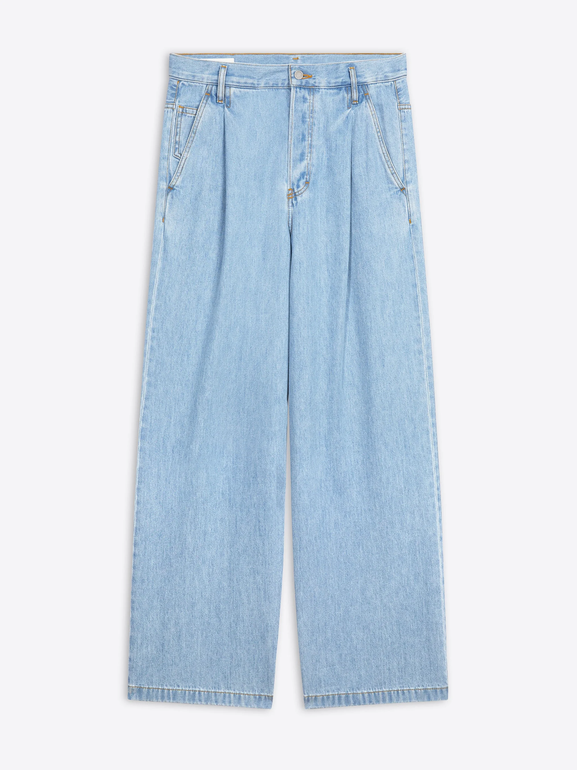 High rise wide leg denim pants with pleats. DETAILS - 100% Cotton. - Loose fit. High rise. Deep pleat. Five pockets. Belt loops. Front closure. - Ref: 252-020923-2381 SIZE AND FIT Model is 189 cm / 74.5 inches and wears size 31.