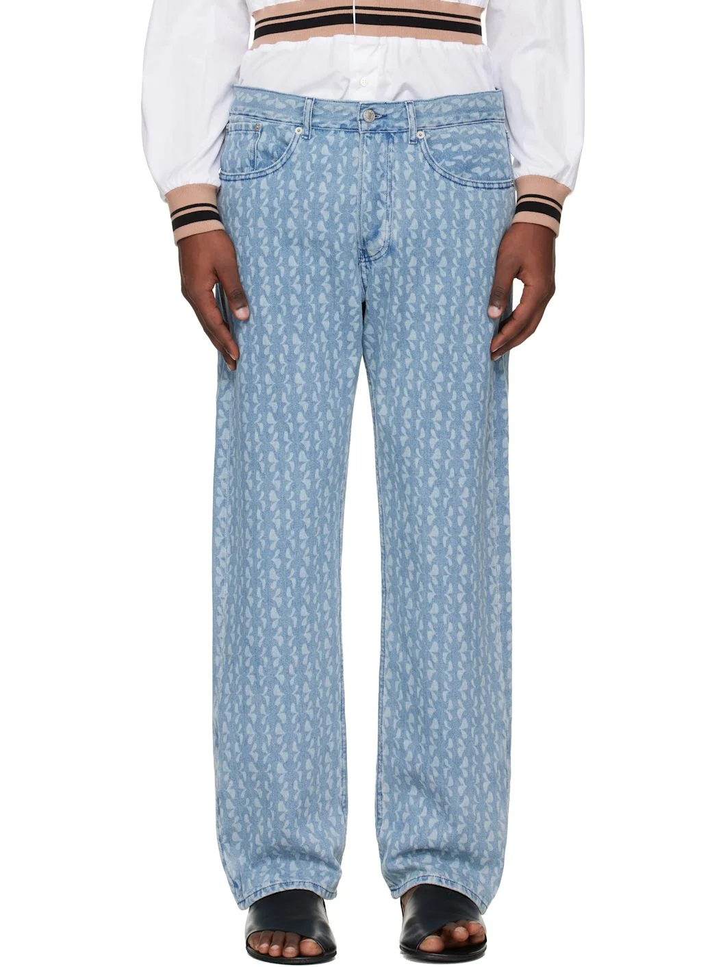 Non-stretch denim jeans. · Graphic pattern printed throughout · Belt loops · Five-pocket styling · Button fly · Logo patch at back waistband · Logo-engraved silver-tone hardware Supplier color: Dessin 100% cotton. Made in Tunisia 261358M186008