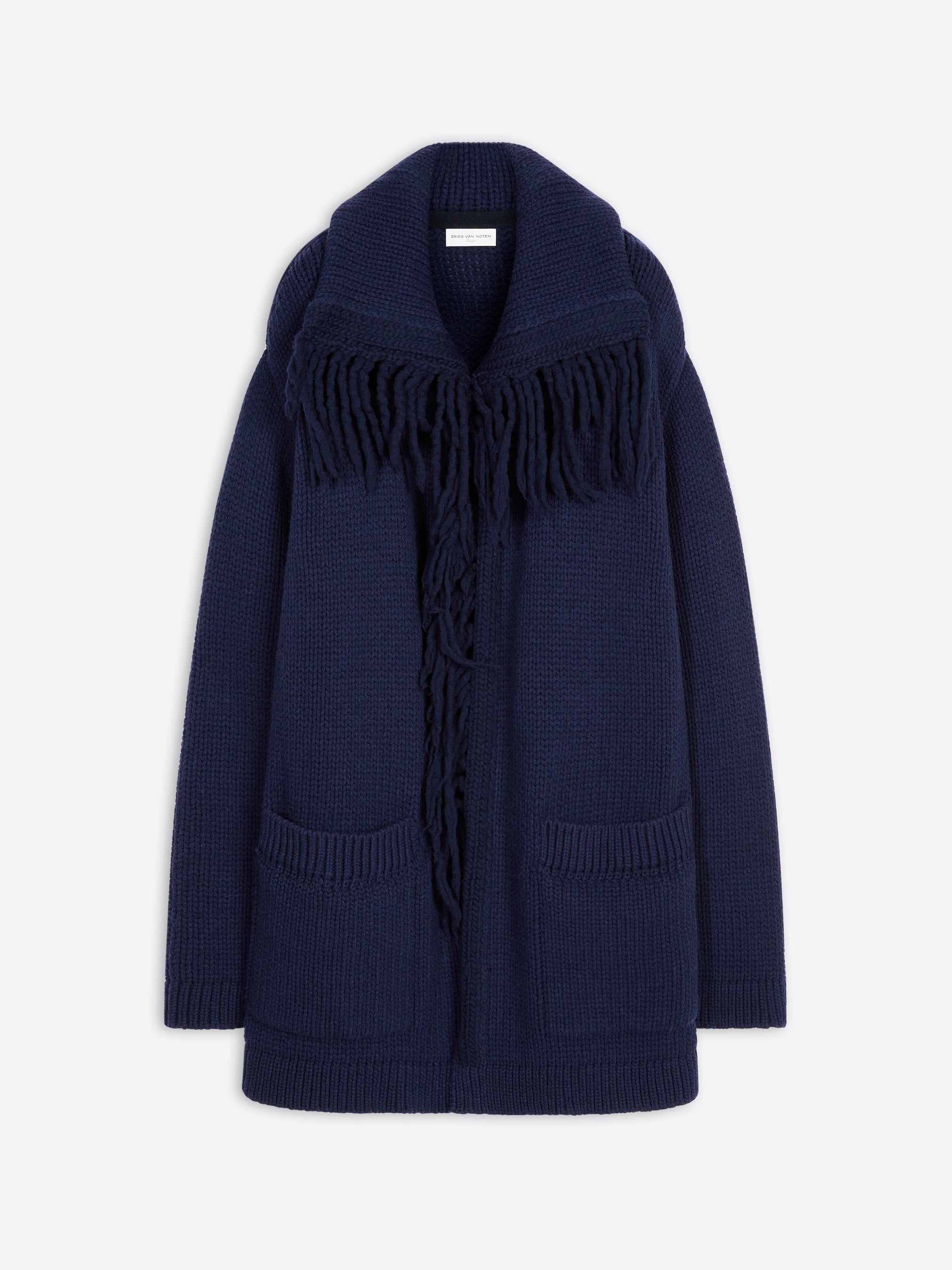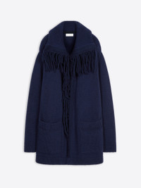 Loose fit cardigan with fringed details and pin closure, in wool. DETAILS - 100% Virgin Wool. - Comes with extra pin for closure. Front fringed details. - Oversized fit. Front patch pockets. Front pin closure. - Ref: 242-021257-9714 SIZE AND FIT Model is 189 cm / 74.5 inches and wears size L.
