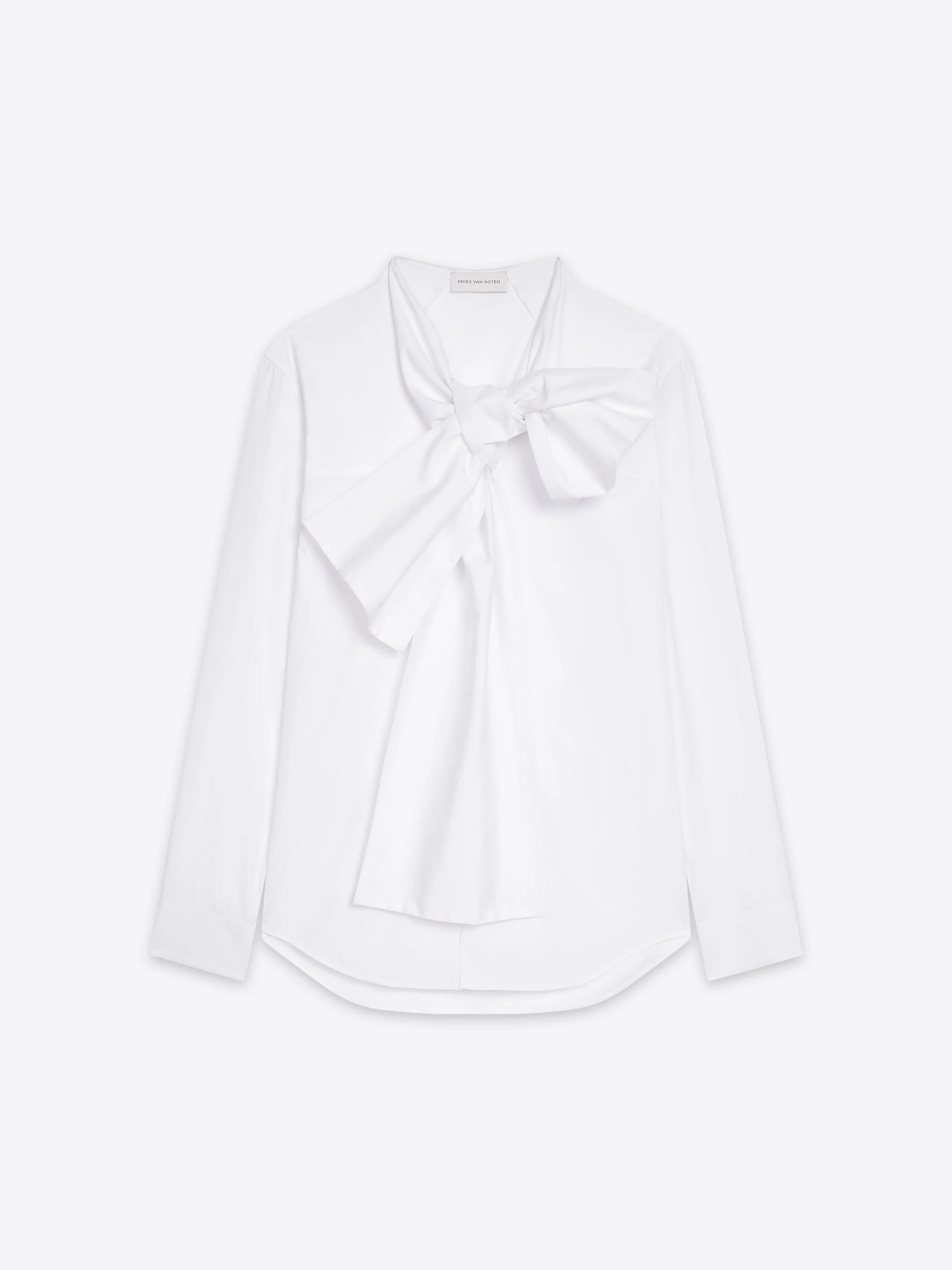 Fitted shirt in cotton poplin, with sculpted bow collar. DETAILS - 100% Cotton Poplin. - Bow collar. - Tight fit. Buttoned cuffs. Front button closure. - Ref: 252-020779-2295 SIZE AND FIT Model is 189 cm / 74.5 inches and wears size 48.