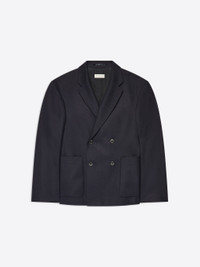 Double breasted boxy blazer in wool. DETAILS - 100% Wool. Lining: 100% Cupro. - Wool flannel from Lovat Mill. - Boxy fit. Double-breasted. Front patch pockets. Front button closure. - Ref: 232-020414-7207 SIZE AND FIT Model is 188 cm / 74 inches and wears size L.