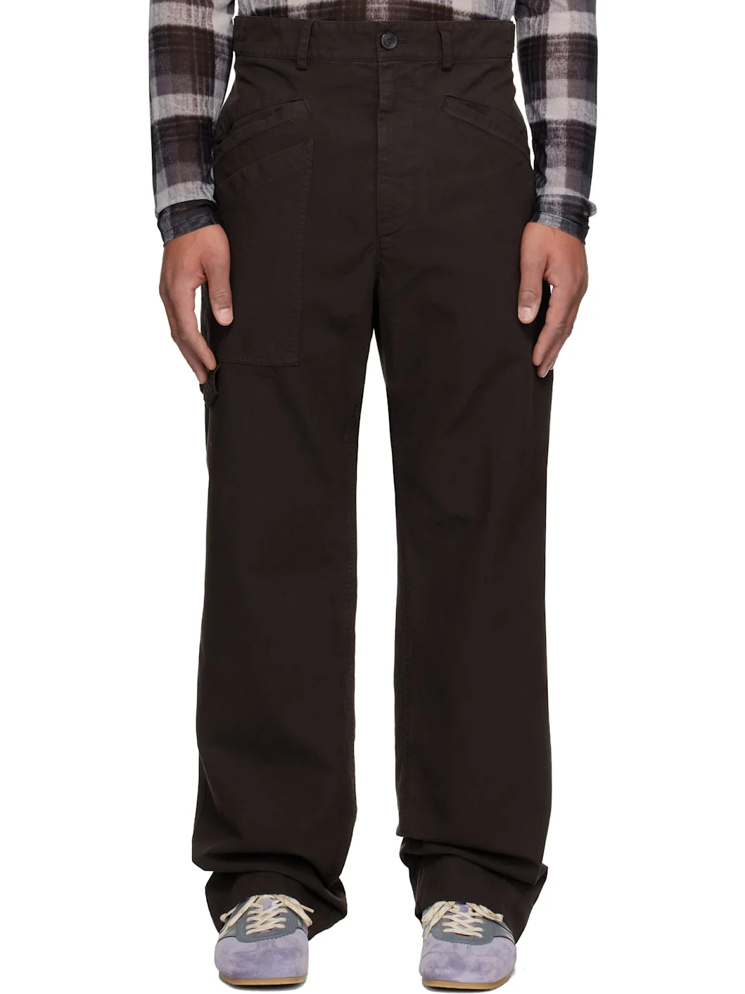 Cotton twill trousers. · Belt loops · Three-pocket styling · Zip fly · Patch pocket at front · Hammer loop at outseam · Adjustable button tabs at back waistband Supplier color: Brown 100% cotton. Made in Romania 252358M191015