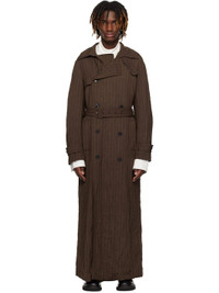 Polyester herringbone trench coat. Striped pattern throughout. · Detachable throat guard at spread collar · Double-breasted button closure · Welt pockets · Buttoned storm flap at chest · Belt loops and detachable pin-buckle belt · Epaulets · Adjustable button tab at cuffs · Storm flap at back · Central vent at back hem · Welt pocket at interior · Unlined Supplier color: Brown 100% polyester. Made in Romania 251358M184001