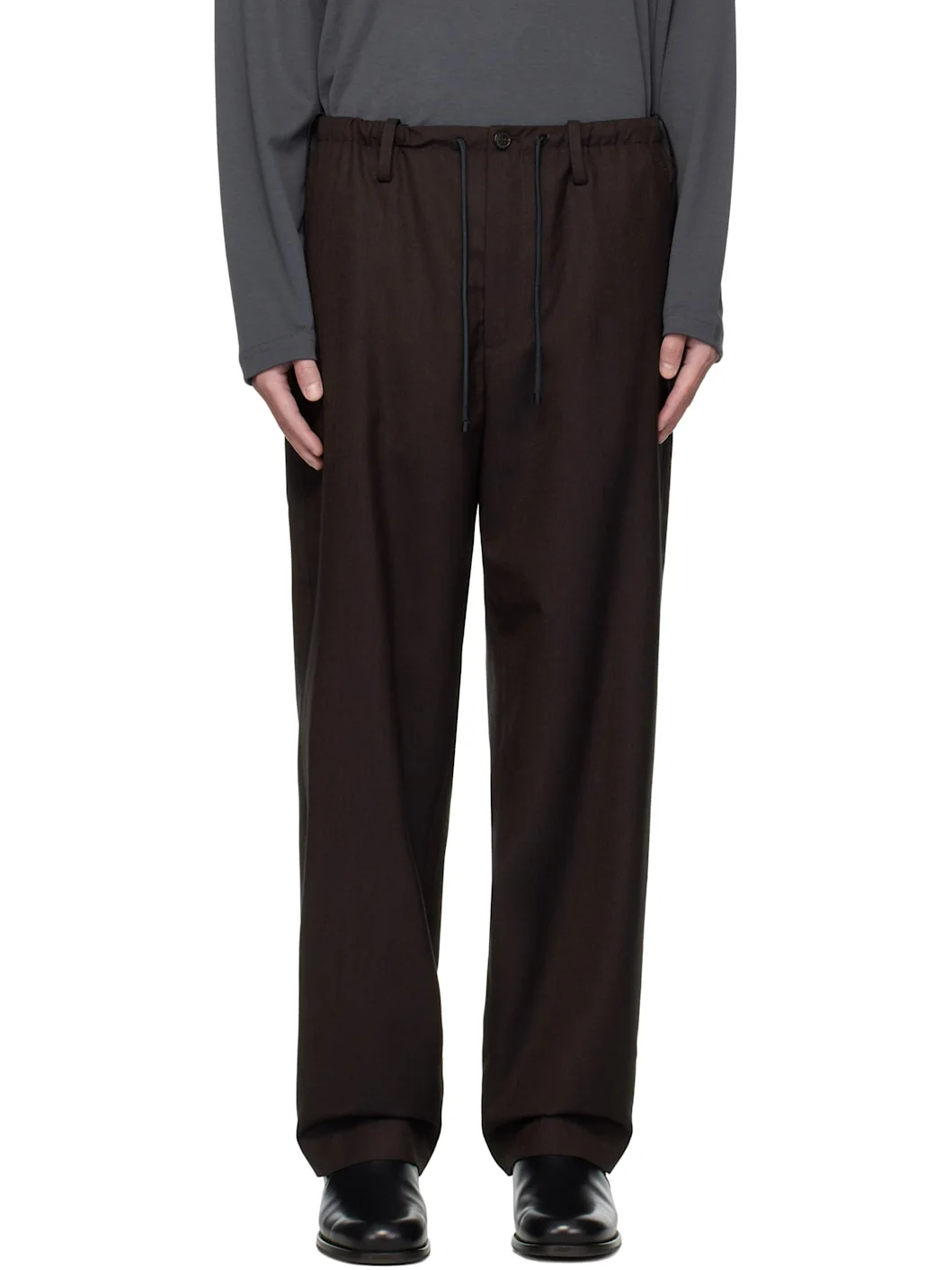 Wool canvas trousers. · Drawstring and belt loops at elasticized waistband · Three-pocket styling · Zip fly Supplier color: Dark brown 100% wool. Made in Tunisia 252358M191022