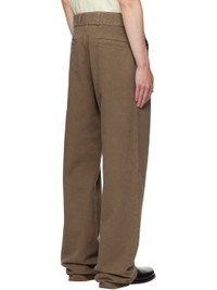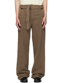Overdyed cotton twill trousers. · Straight-leg · Mid-rise · Belt loops · Detachable cinch belt at waistband · Four-pocket styling · Zip fly · Buttoned overlay at front Supplier color: Mud 100% cotton. Made in Romania 252358M191018