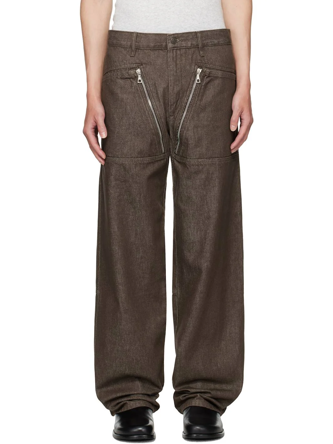 Brown Paneled Jeans