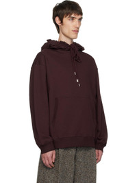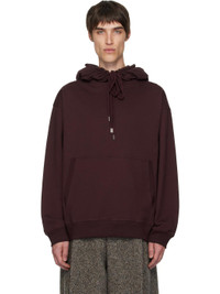 Heavyweight French terry hoodie. · Drawstrings and ruching at hood · Kangaroo pocket at front · Rib-knit hem and cuffs · Dropped shoulders Supplier color: Burgundy 100% cotton. Made in Turkey 252358M202012