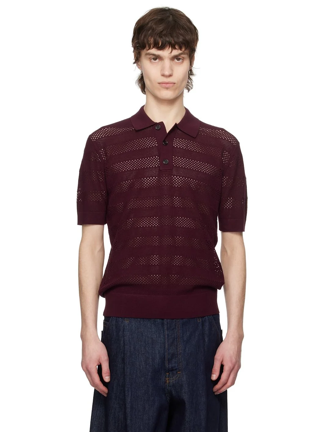 Burgundy Open-Knit Polo