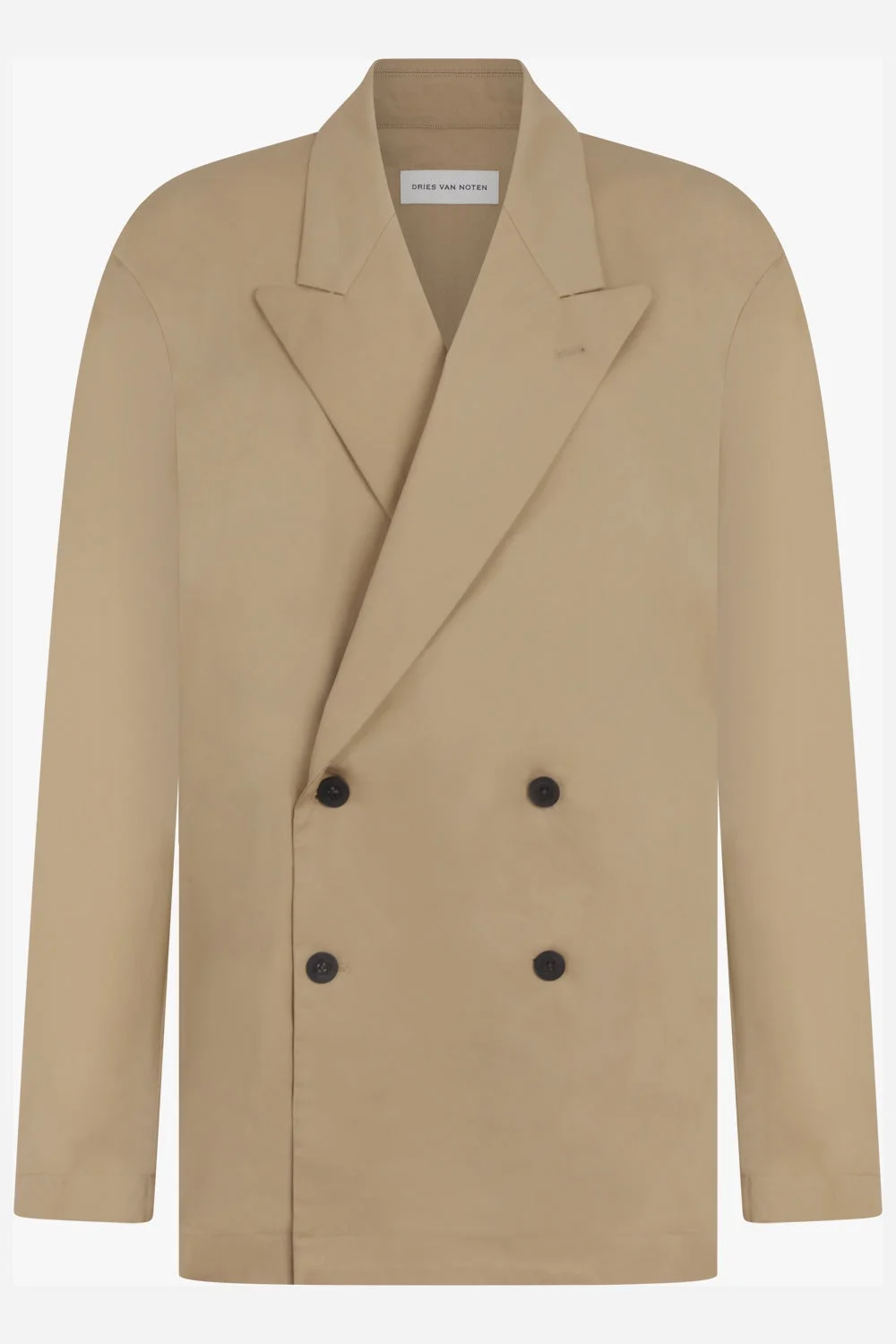 A refined staple with classic structure, the Caplan Double-Breasted Jacket in Beige brings understated elegance to modern tailoring. Crafted from 100% cotton, the mid-weight fabric offers a clean, breathable finish. The sharp, double-breasted front and softly padded shoulders lend a tailored silhouette, while the neutral hue ensures versatile styling across seasons. - Fabrication: 100% Cotton - Mid-weight cotton with structured feel - Double-breasted front with tonal buttons - Peak lapels and buttoned cuffs - Front flap pockets and chest welt pocket - Rear vent for ease of movement - Fully lined for added structure Layer over relaxed Dries Van Noten tailoring or denim for a sophisticated, everyday look with timeless appeal. Measurements S: Bust 100cm, Waist 100cm, Hip 100cm, Length 77cm M: Bust 106cm, Waist 106cm, Hip 106cm, Length 77cm L: Bust 112cm, Waist 112cm, Hip 112cm, Length 77cm
