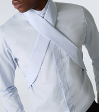 The Carvies shirt from Dries Van Noten is crafted from crisp cotton poplin. This timeless silhouette is updated with a modern twist, featuring a concealed button placket and an attached matching harness-inspired detail. Product Details - Material: 100% cotton - Care instructions: dry clean - Made in Hungary - Designer color name: Light Blue - Item color: blue - Collar: band - Cuff: buttoned - Closure: buttoned front - Attached belt - Item number: P01086453 Size & Fit - True to size - Without pleats in the back - Slim fit - Darts in the back - Non-stretchy fabric - Falls below the hip - Height of model is 189cm-74.5" and wears a size IT 50