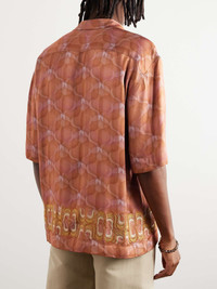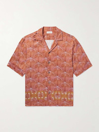 Dries Van Noten's 'Cassi' shirt is modeled on '50s bowling styles, defined by the boxy fit and classic camp collar. It's made from lustrous satin and patterned with abstract motifs in tonal-orange and gold shades. Wear yours solo or layered over a simple tee. Size & Fit - Fits true to size. Take your normal size - Designed for a boxy fit - Lightweight, non-stretchy fabric - S/M/L sizing Details & Care - Tonal-orange and gold satin - Button fastenings - 100% viscose; buttons: 100% horn (Buffalo)