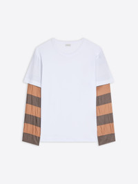 Loose fit long-sleeved T-shirt in heavyweight cotton, with contrast striped sleeves. DETAILS - 62% Cotton, 38% Viscose. - Contrast sleeves. - Regular fit. Long sleeves. Crew neck. - Ref: 261-021114-3603 SIZE AND FIT Model is 189 cm / 74.5 inches and wears size M.
