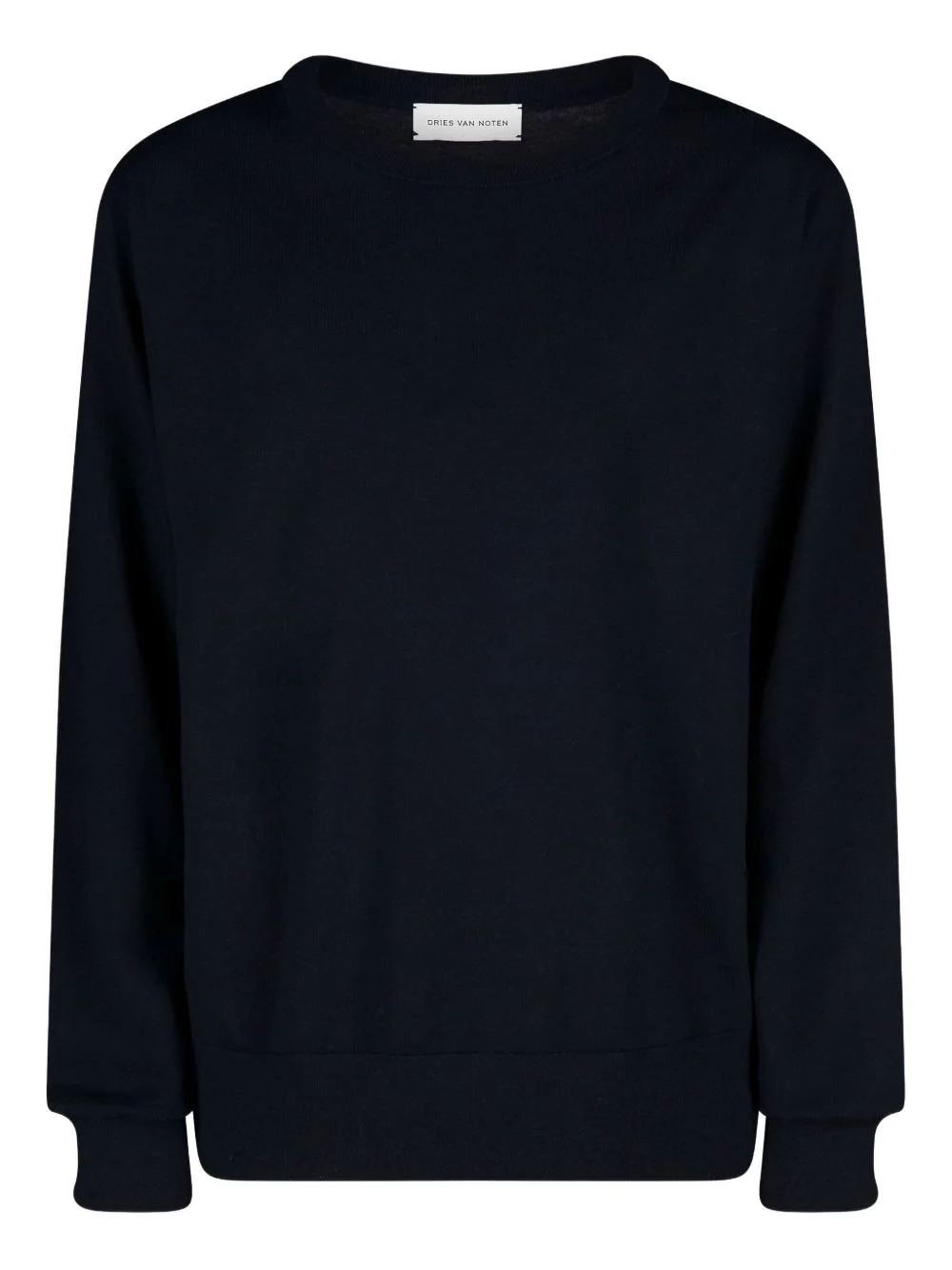 crew-neck sweater Highlights - Black - Crew neck - Long sleeves - Ribbed cuffs - Ribbed hem - Relaxed fit - Model is 188 cm / 74 inches and wears size m. Imported Composition Merino 100% Washing instructions Read Manufacturer Guidelines