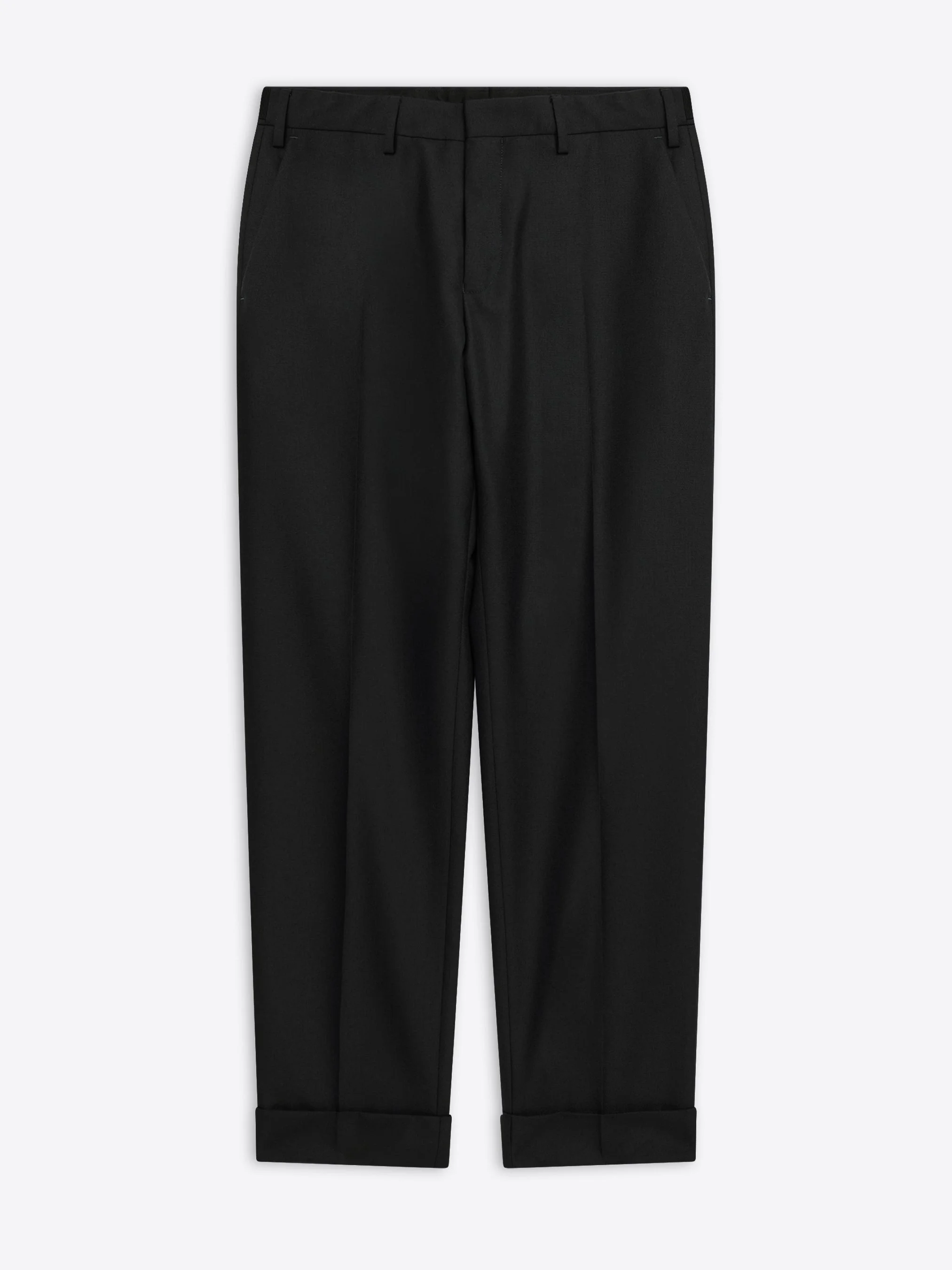 Regular fit tapered pants in wool, with cuffs. DETAILS - 100% Wool. - Regular fit. Mid rise. Cropped leg with cuff. Side slit pockets and back flap pockets. Belt loops. Waistband tabs. Front closure. - Style: Philip - Ref: 251-020904-1310 SIZE AND FIT Model is 189 cm / 74.5 inches and wears size 48.