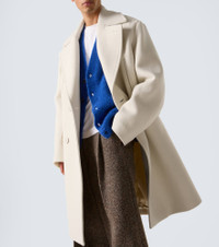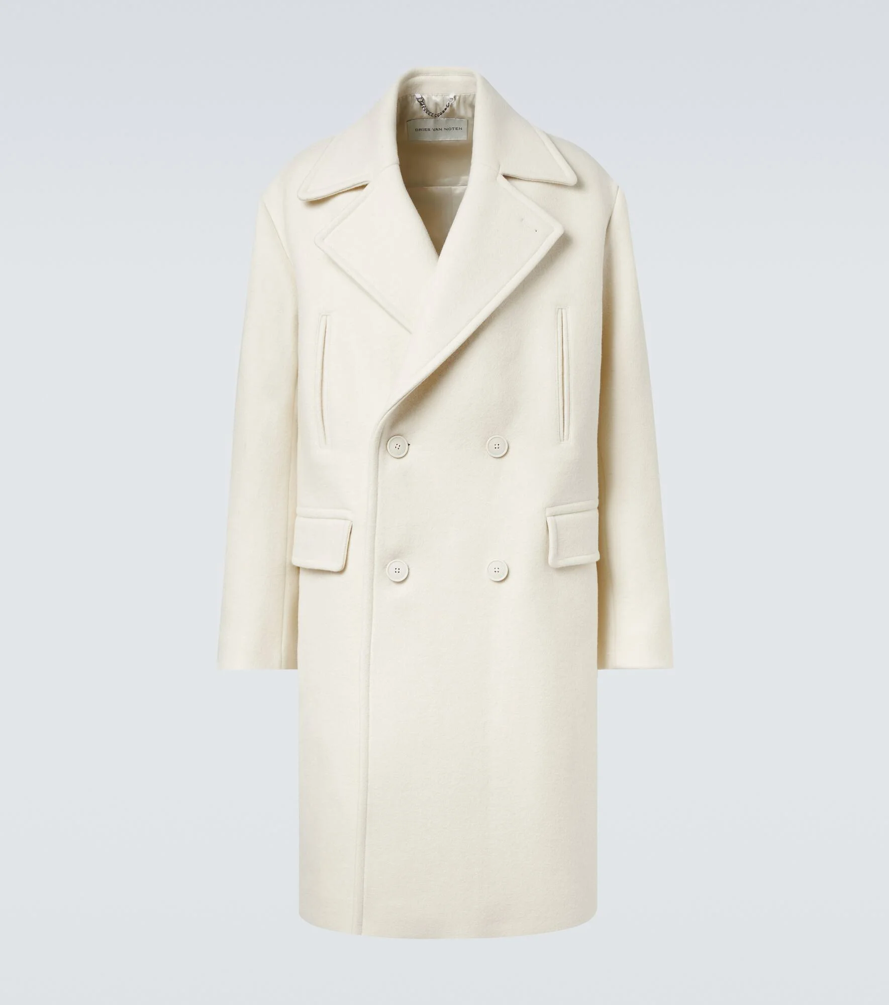 Dries Van Noten approaches fashion with an inimitable, artful perspective. Made from wool and cotton, this coat is a double-breasted piece with 2 side slit pockets, 2 flap pockets, and tonal button fastenings. Product Details - Material: 96% wool, 4% cotton - Care instructions: dry clean - Made in Poland - Designer color name: Off White - Item color: white - Lining: 60% cupro, 40% cotton - Notched lapel - Closure: double-breasted (four buttons) - Pockets: jetted, flap pockets, internal pocket - Fully lined - Item number: P01086436 Size & Fit - Fits large to size - we recommend trying one size smaller - Dropped shoulders - Designed for a loose fit - Non-stretchy fabric - The model in the picture is 185cm-6'1" and wearing a size M