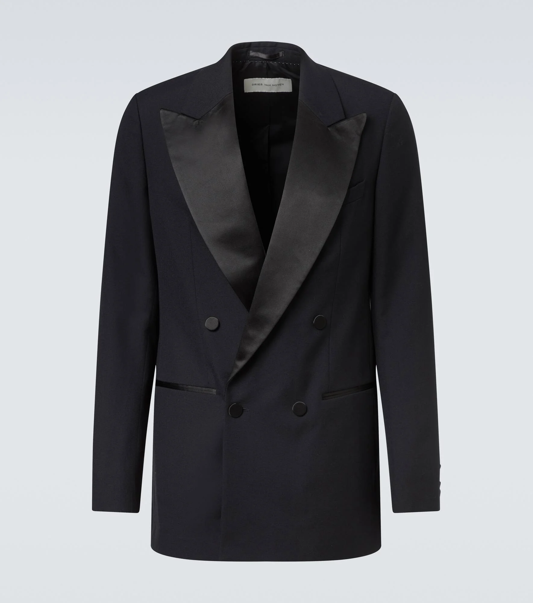 Juxtaposing a poetic sensibility with intelligent tailoring, Dries Van Noten creates styles that are always unique. Made from wool and silk, this suit jacket is a fully-lined piece with a double-breasted silhouette. Product Details - Material: 86% wool, 14% silk - Care instructions: dry clean - Made in Morocco - Designer color name: Black - Item color: black - Lining: 100% cupro - Sleeve lining: 100% viscose - Peak lapel - Closure: double-breasted (four buttons) - Cuff: four buttons - Pockets: ticket pocket, jetted, internal pocket - Vent: double - Fully lined - Blazer - Item number: P01086505 Size & Fit - True to size - Shoulder pad inserts - Straight fit - Non-stretchy fabric - Falls below the hip - The model in the picture is 185cm-6'1" and wearing a size IT 50