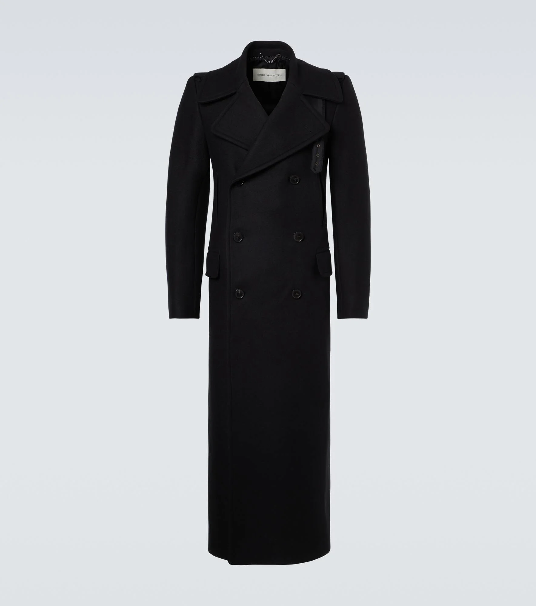 Juxtaposing a poetic sensibility with intelligent tailoring, Dries Van Noten creates styles that are always unique. A classic style in modern proportions, this sleek coat comes with a double-breasted buttoned front and a longline, sculptural silhouette. Product Details - Material: 70% wool, 30% polyamide - Care instructions: dry clean - Made in Poland - Designer color name: Black - Item color: black - Lining: 100% cupro - Detachable shoulder straps - Pockets: side slit pockets, flap pockets, internal pocket - Closure: double-breasted (six buttons) - Vent: single - Item number: P01086503