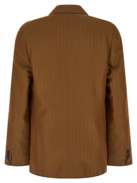 'Barry' double-breasted blazer in wool and viscose blend with pinstripe pattern, front button closure, peak lapels, breast pocket, flap pockets, structured shoulder strap, cuffs with open buttonholes, back slits, inner pocket, viscose lining. - Colour: Brown - Composition: 54% wool, 46% viscose - Country Of Manufacture: Morocco - Dimension: oversize fit - FRENCH size - MPN: 2610204253121712