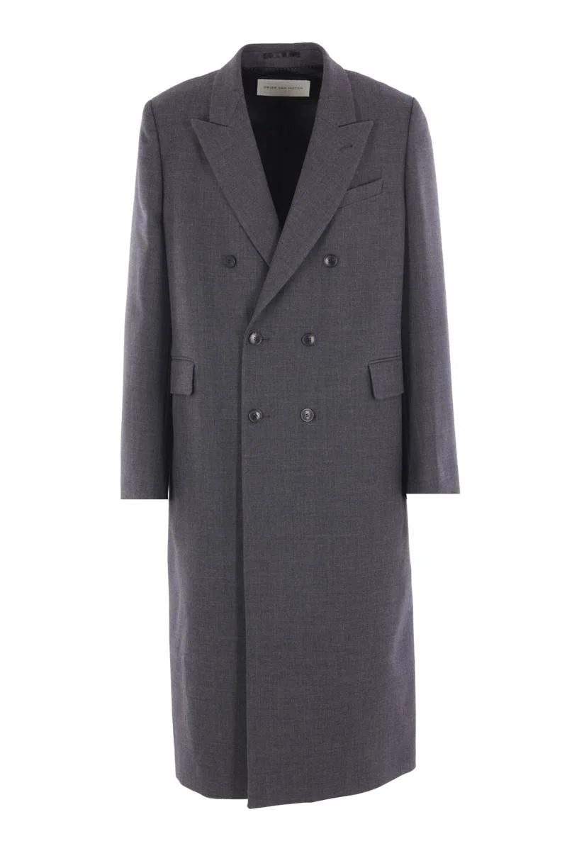 Dries Van Noten double-breasted coat crafted from dark gray wool. Featuring peak lapels, front button fastening, structured shoulders, multiple pockets, long sleeves with buttoned cuffs, and a central vent. Fully lined interior. Gender: Men Material: 100%WOOL Color: GREY Made in: Imported Product ID: 0202412058803 *Import tax/duty will be calculated at checkout (If applicable)