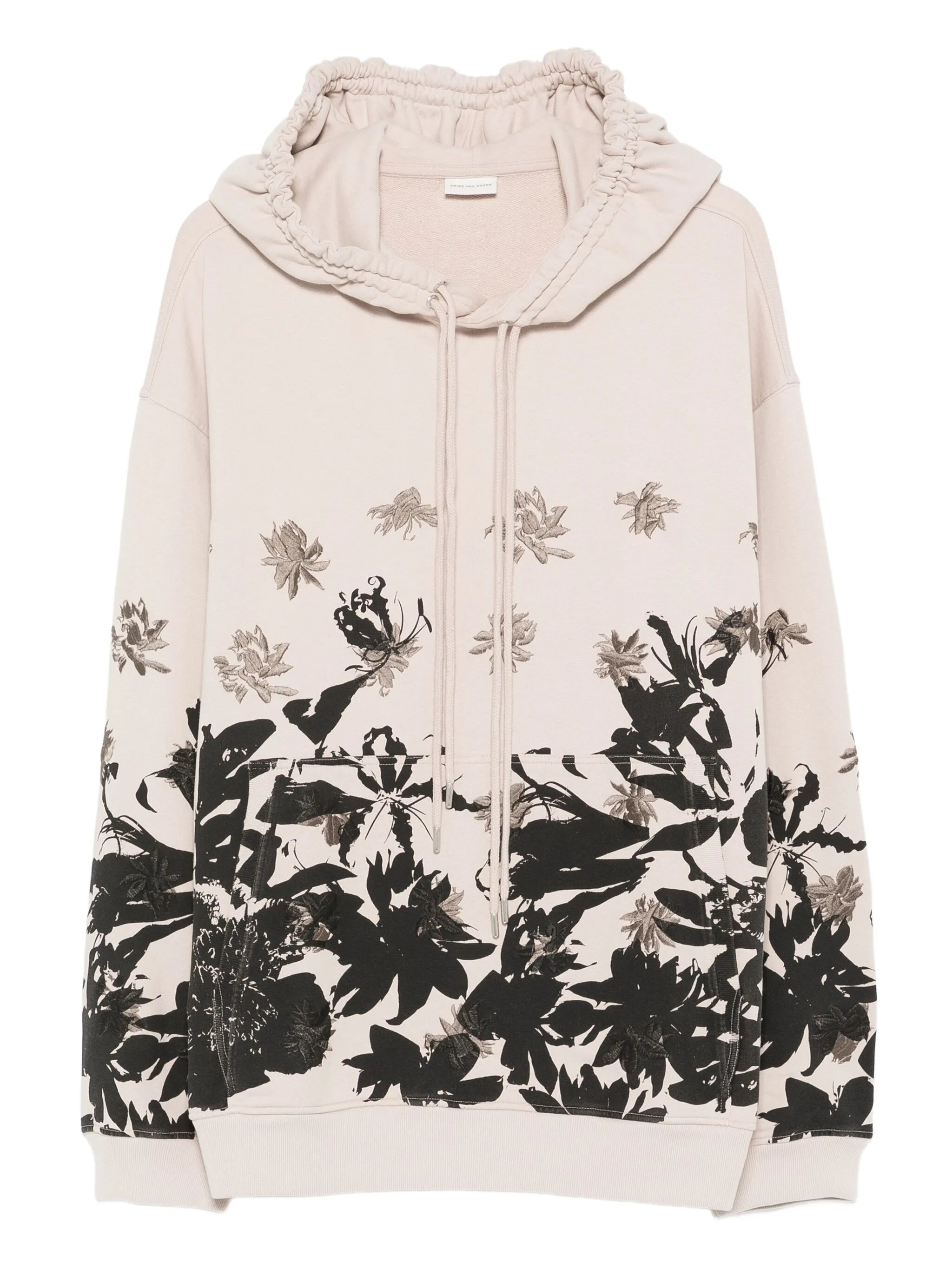 beige cotton floral print drawstring hood long sleeves kangaroo pocket ribbed cuffs and hem - Color: NEUTRALS/BLACK - Made in: Turkey - Designer Style ID: 2613 021141 012 Composition and care Cotton: 100.0%
