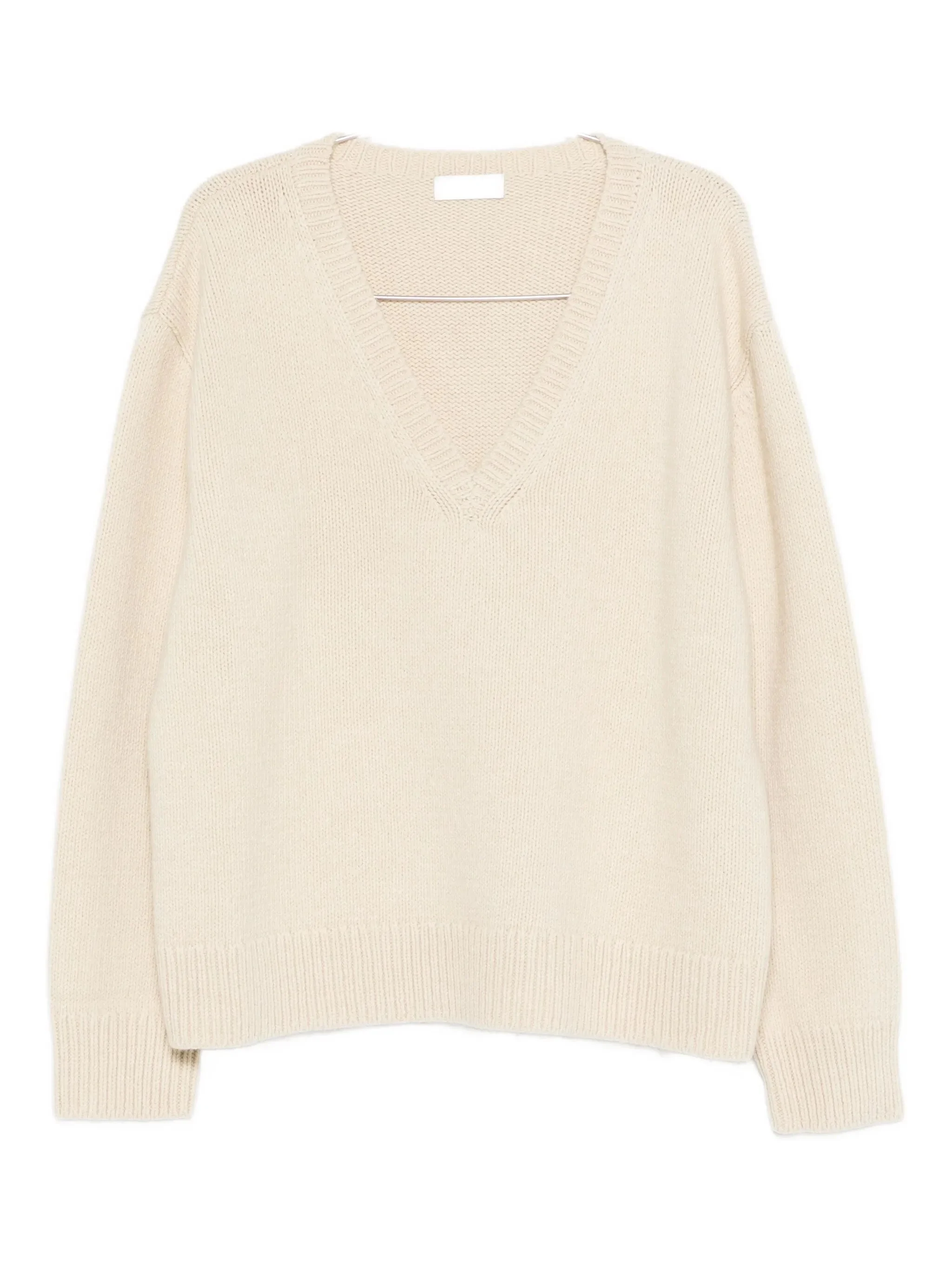ecru merino-cashmere blend V-neck long sleeves ribbed cuffs and hem - Color: NEUTRALS - Made in: China - Designer Style ID: 2710 021246 005 Composition and care Cashmere: 10.0%, Merino: 90.0%