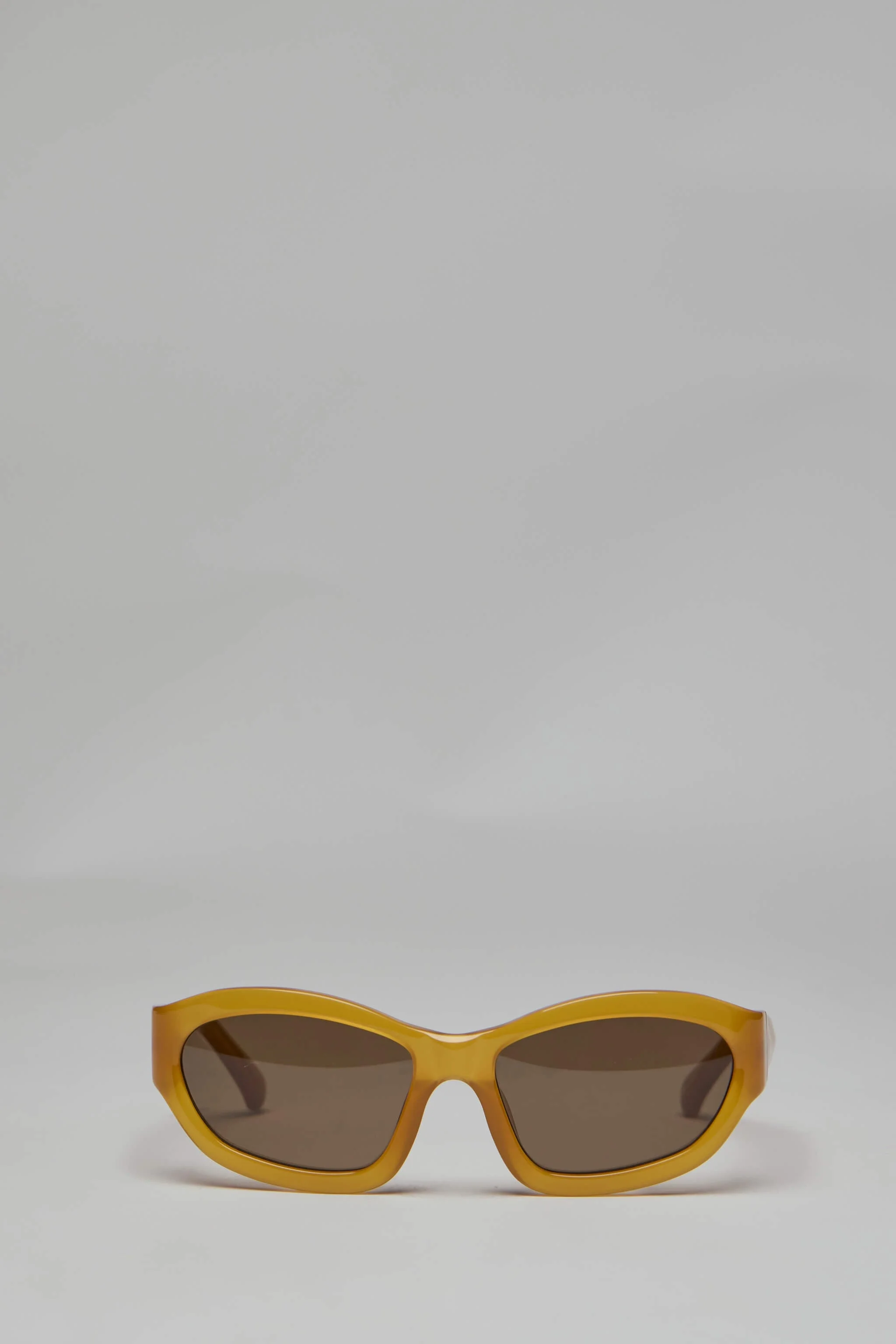 SKU: 153608 Brand style: DVN215 Stylish sunglasses featuring a bold, rounded frame with a striking yellow hue. The lenses provide a shaded, protective cover, complemented by a chic, designer arm detail. - Rounded yellow frame - Tinted protective lenses - Designer branding on arms - Compact size and design - Two-tone frame and lens Materials: Acetate Color: Dark Brown/ Silver/ Brown