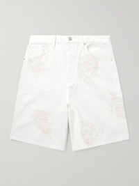 Straight-Leg Embroidered Denim Bermuda Shorts White