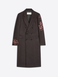 Regular fit tailored double-breasted coat with peak lapel, in wool flannel with floral embroideries. DETAILS - 100% Wool. Lining: 60% Cupro, 40% Cotton. - Floral embroideries. - Regular fit. Double-breasted. Front flap pockets and welt pocket at chest. Buttoned cuffs. Front button closure. - Ref: 252-120258-2196 SIZE AND FIT Model is 189 cm / 74.5 inches and wears size 48.