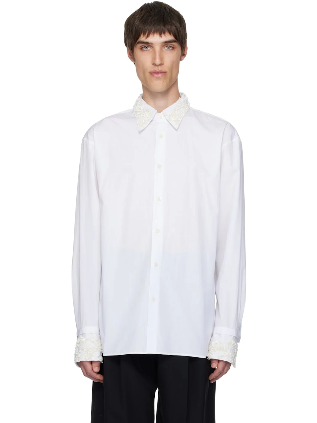Cotton poplin shirt. Sequinned trim at collar and cuffs. · Spread collar · Button closure · Shirttail hem · Dropped shoulders · Buttoned barrel cuffs Supplier color: White 100% cotton. Made in India 252358M192050