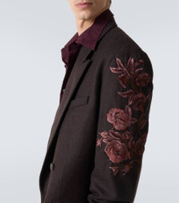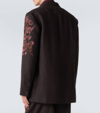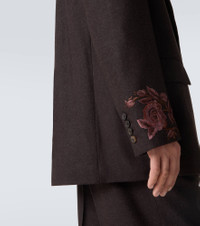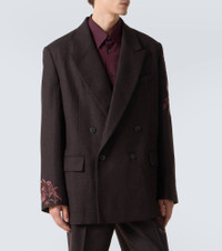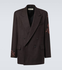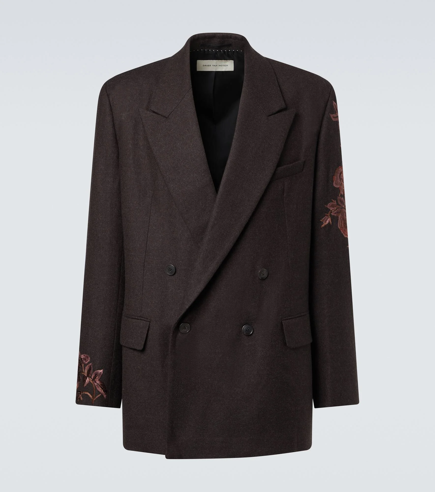 Juxtaposing a poetic sensibility with intelligent tailoring, Dries Van Noten creates styles that are always unique. This regular-fit blazer features a double-breasted silhouette with floral embroidery on the sleeves. Product Details - Material: 100% wool - Care instructions: dry clean - Made in India - Designer color name: Dark Brown - Item color: brown - Lining: 100% cupro - Sleeve lining: 100% viscose - Pockets: flap pockets, angled chest pocket, internal pocket - Peak lapel - Closure: double-breasted (four buttons) - Cuff: buttoned - Item number: P01087889 Size & Fit - True to size - Shoulder pad inserts - Straight fit - Non-stretchy fabric - Falls below the hip - Height of model is 189cm-74.5" and wears a size L