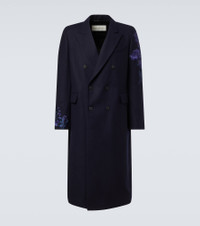 Floral double-breasted wool coat