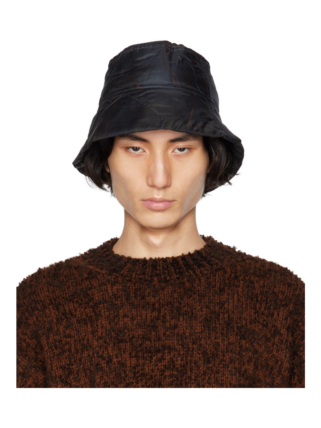 Quilted stretch polyester- and silk-blend satin bucket hat in navy. · Floral pattern printed throughout · Cotton twill lining Supplier color: Navy