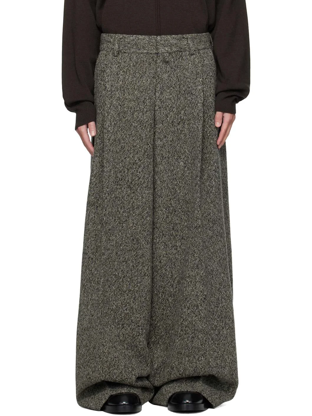 Brushed wool- and viscose-blend tweed trousers. · Marling throughout · Wide, straight-leg · Belt loops · Four-pocket styling · Zip fly · Pleats at front Supplier color: Grey 95% wool, 5% viscose. Made in Hungary 252358M191041