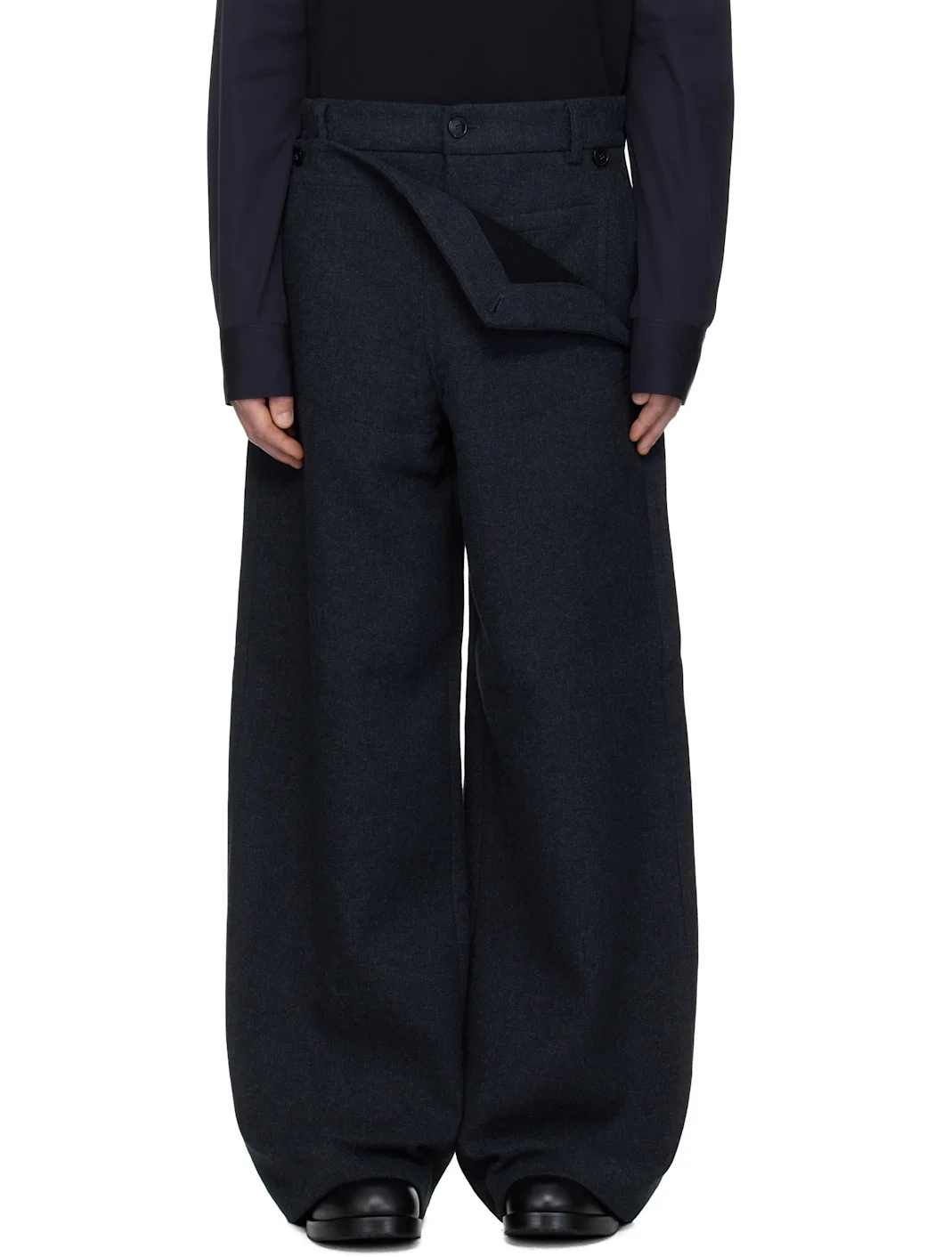 Cotton-blend melton trousers. · Paneled construction · Belt loops · Four-pocket styling · Zip fly · Buttoned panel at front waist Supplier color: Dark grey 38% cotton, 30% polyester, 20% acrylic, 10% wool, 2% other fibers. Made in Romania 252358M191019