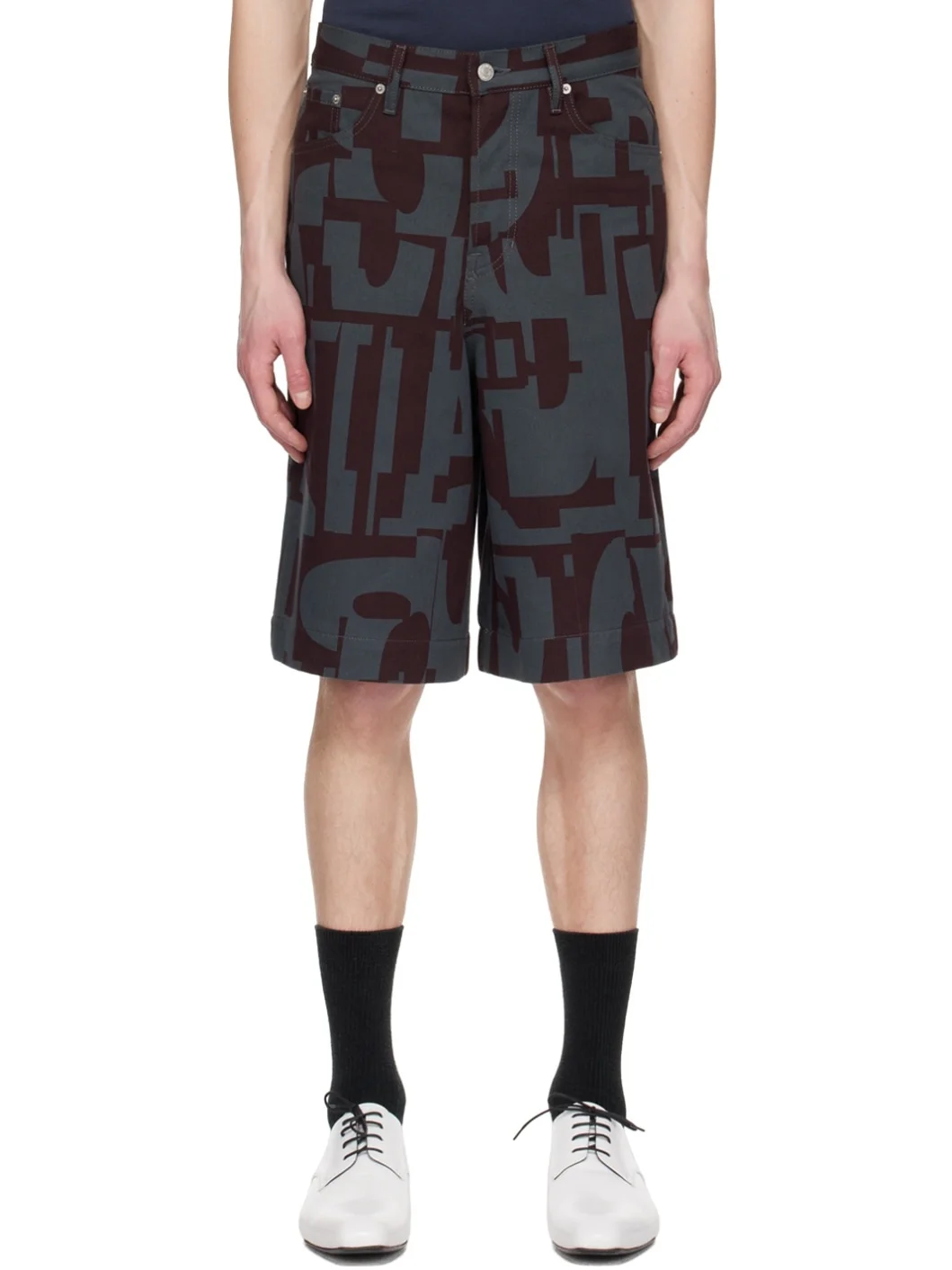 Non-stretch denim shorts. Graphic pattern printed throughout. · Belt loops · Five-pocket styling · Button-fly · Leather logo patch at back waistband · Logo-engraved silver-tone hardware Supplier color: Aubergine 100% cotton. Made in Tunisia 231358M193000
