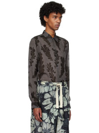 Slim-fit semi-sheer viscose georgette shirt. Suminagashi-style graphic pattern printed throughout. · Spread collar · Button closure · Shirttail hem · Pleats at adjustable single-button barrel cuffs Supplier color: Grey 100% viscose. Made in Hungary 251358M192050