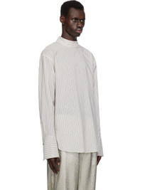 Cotton poplin shirt. Stripes throughout. · Turtleneck · Shirttail hem · Dropped shoulders · French cuffs · Spread collar and four-button placket at back Supplier color: Light grey 100% cotton. Made in Hungary 251358M192019
