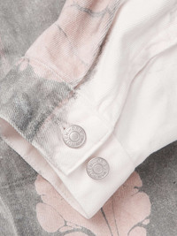 Floral patterns have been a hallmark of Dries Van Noten's collections since the late 1980s. This jacket is made from faded grey denim and covered in pink blooms. It's cut for a relaxed fit and has a two-way zip fastening and a trio of pockets. Size & Fit - Fits true to size. Take your normal size - Designed for a loose fit - Mid-weight, non-stretchy denim - Model is shown wearing a M - Model measures: chest 38"/ 96cm, height 6'0"/ 183cm Details & Care - Black, pink and white denim - Two-way zip fastening - 100% cotton - Dry clean
