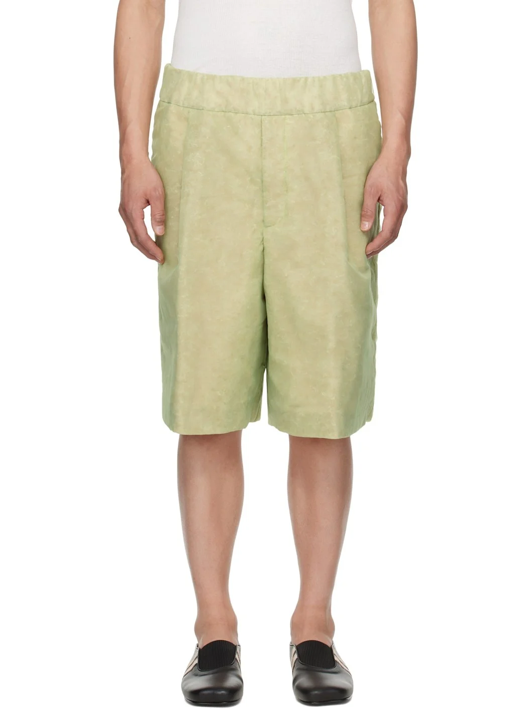 Polyester twill shorts. Integrated chiffon overlay throughout. · Layered construction · Concealed drawstring at elasticized waistband · Three-pocket styling · Zip-fly · Pleats at front Supplier color: Light green Body: 100% polyester. Lining: 100% viscose. Made in Romania 251358M193014