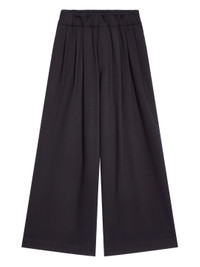 300049914GRY-SS / A5252-021143/2611/506 - Elastic waistband for comfort - Pleated front panels - Wide-leg silhouette - Full-length inseam - Premium woven construction - Relaxed fit The Dries Van Noten Hama Pants deliver contemporary elegance with relaxed sophistication and versatile styling options. Crafted from premium woven fabric in classic black, featuring a wide-leg silhouette with pleated front detailing and comfortable elastic waistband. The Belgian designer's signature approach to modern tailoring creates effortless luxury for both casual and elevated occasions.