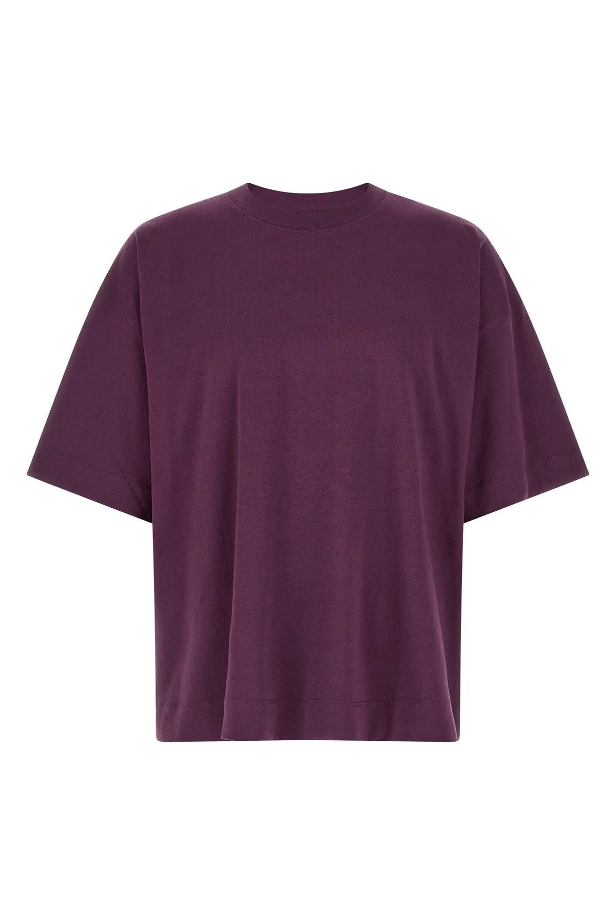 cod. 2610211113603357 'Heno' cotton jersey crew neck t-shirt with short sleeves and dropped shoulders. Color: Purple Size & Fit: oversized fit Composition: 100% cotton Made in: Turkey