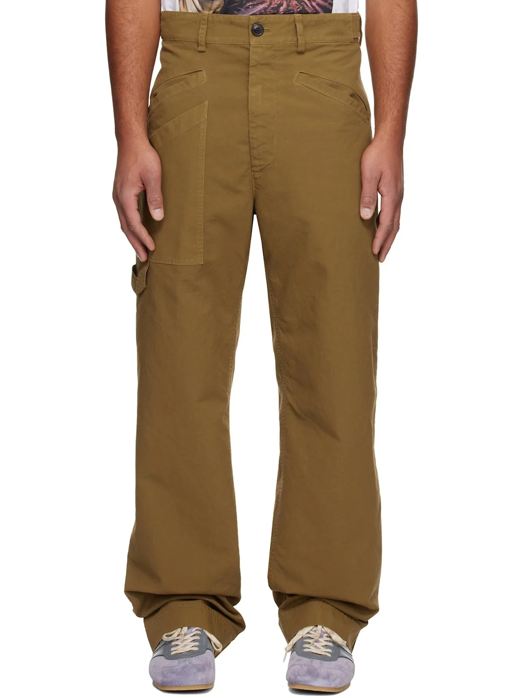 Cotton twill trousers. · Belt loops · Three-pocket styling · Zip fly · Patch pocket at front · Hammer loop at outseam · Adjustable button tabs at back waistband Supplier color: Olive 100% cotton. Made in Romania 252358M191016