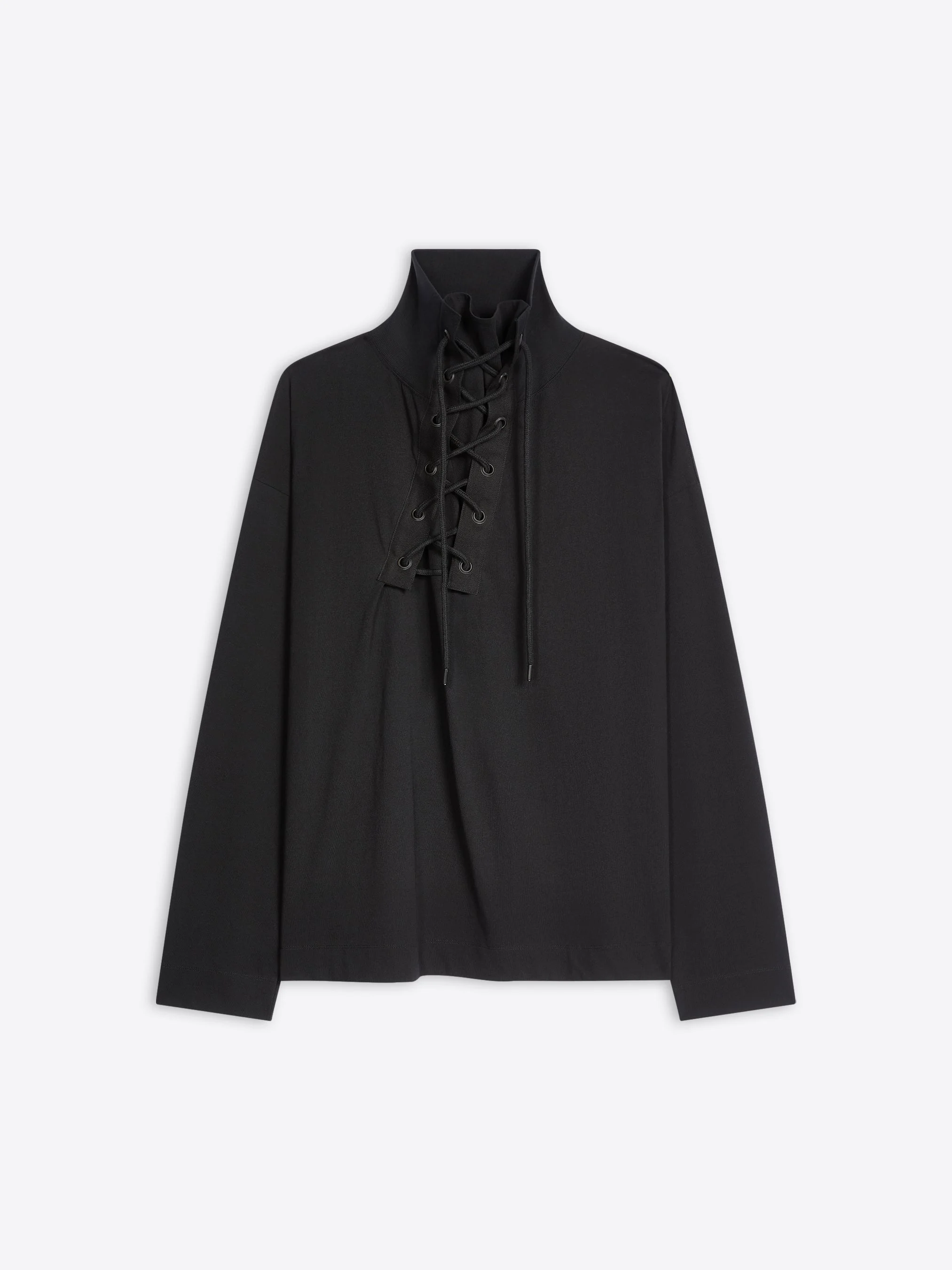Loose fit long-sleeved T-shirt in cotton, with lace-up collar. DETAILS - 100% Heavyweight Cotton. - Loose fit. Long sleeves. Lace-up collar. - Ref: 252-021115-2603 SIZE AND FIT Model is 189 cm / 74.5 inches and wears size M.