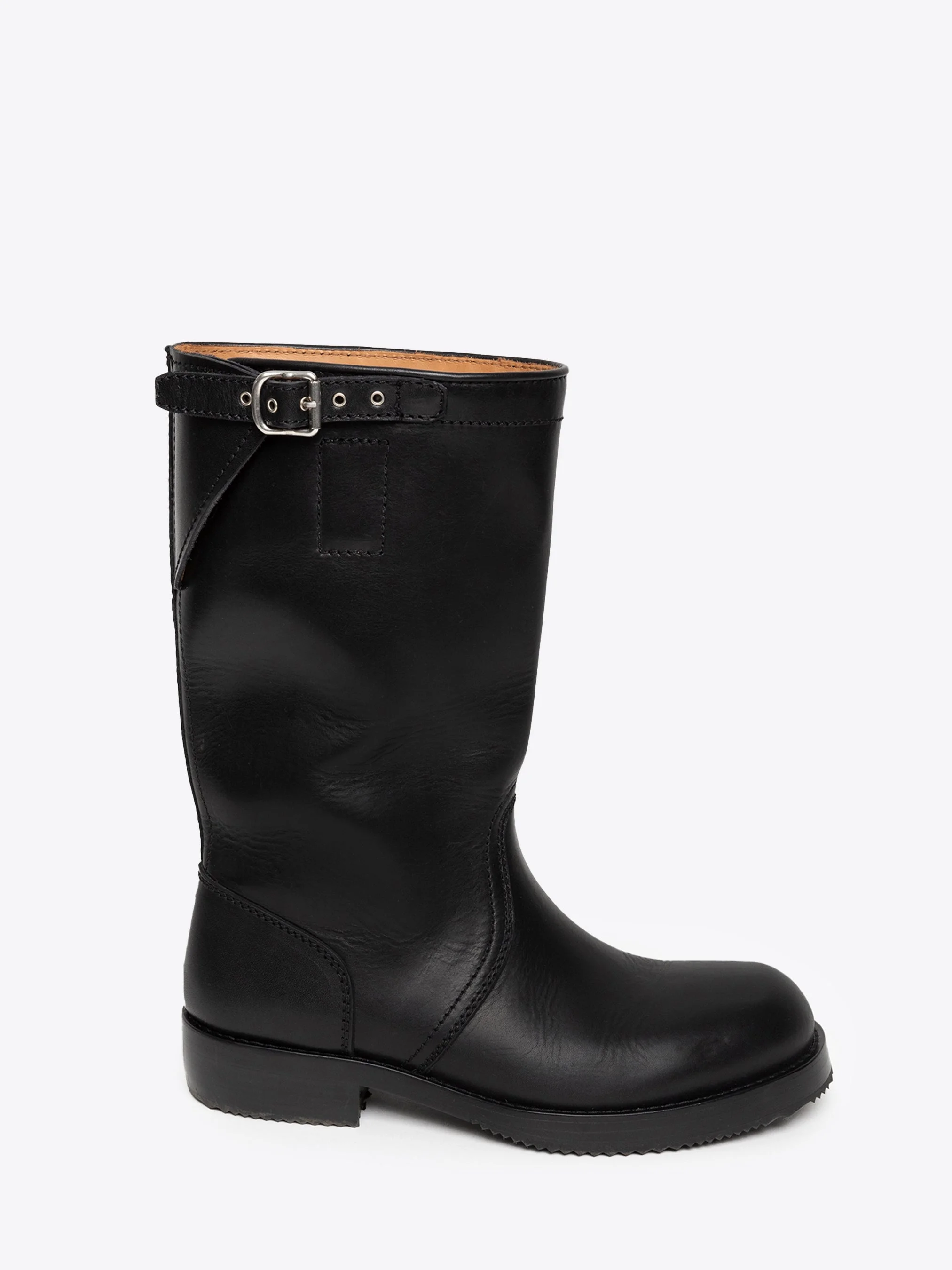 Slip-on biker boots in leather, with top buckle detail. DETAILS - 100% Calf Leather. - Slip-on. - Comes with dust bag. - Made in Italy. - Ref: 252-021700-105