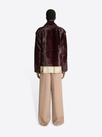Loose fit biker jacket with multi-zip pockets, in leather with lustrous finish. DETAILS - 100% Leather. Lining: 43% Cotton, 35% Cupro, 20% Polyester, 2% Polyamide. - Loose fit. Buttoned shoulder tabs. Front patch and zip pockets. Zipped cuffs. Belted. Front two-way zip closure. - Ref: 252-021803-2371 SIZE AND FIT Model is 189 cm / 74.5 inches and wears size L.