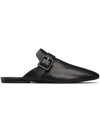 Buffed leather slip-on loafers. · Square toe · Pin-buckle strap at vamp · Leather sole with rubber injections Supplier color: Black Upper: leather. Sole: leather, rubber. Made in Italy 252358M231015