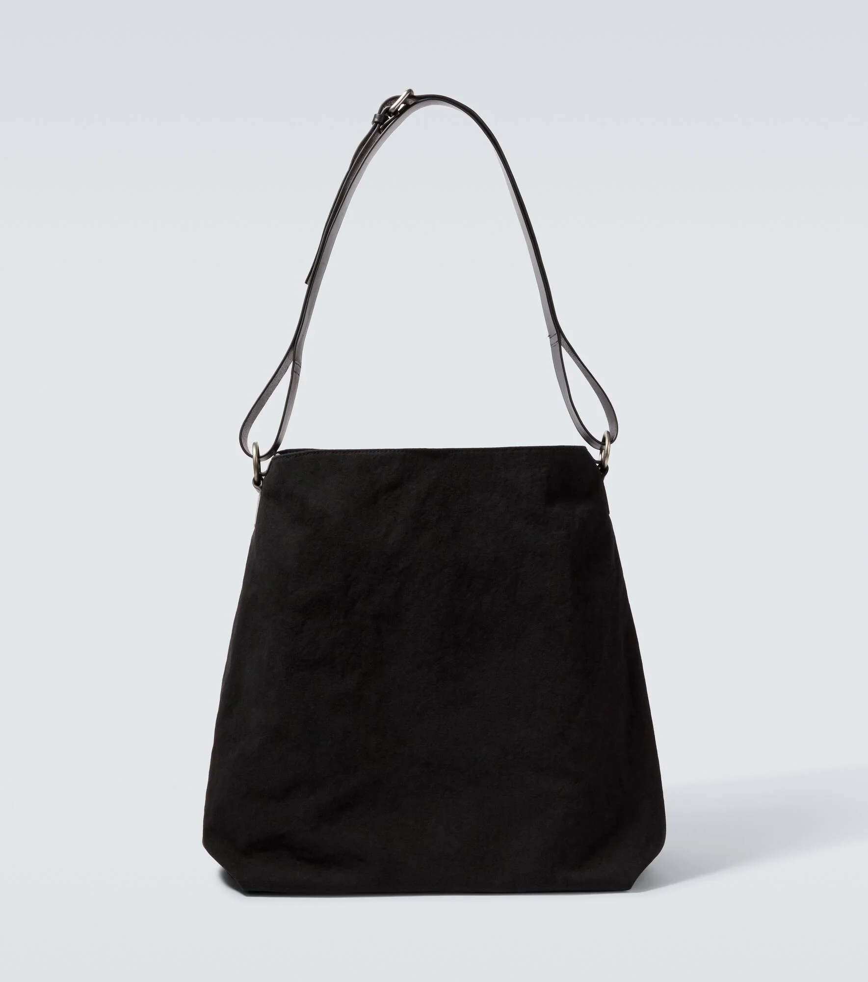 Juxtaposing a poetic sensibility with distinctive designs, Dries Van Noten creates styles that are always unique. This shoulder bag is crafted from cotton canvas and features an adjustable leather shoulder strap and a magnetic fastening. Product Details - Material: cotton - Lining: cotton - Made in India - Designer color name: Black - Item color: black - Trim: leather - Internal details: internal zipped pocket - Closure: magnetic fastening - Adjustable shoulder strap - Item number: P01086487 Size & Fit - Height 51cm-20" - Width 44cm-17.5" - Depth 20cm-8" - Adjustable shoulder strap - Min. length shoulder strap 98cm-38.5" - Max. length shoulder strap 102cm-40"