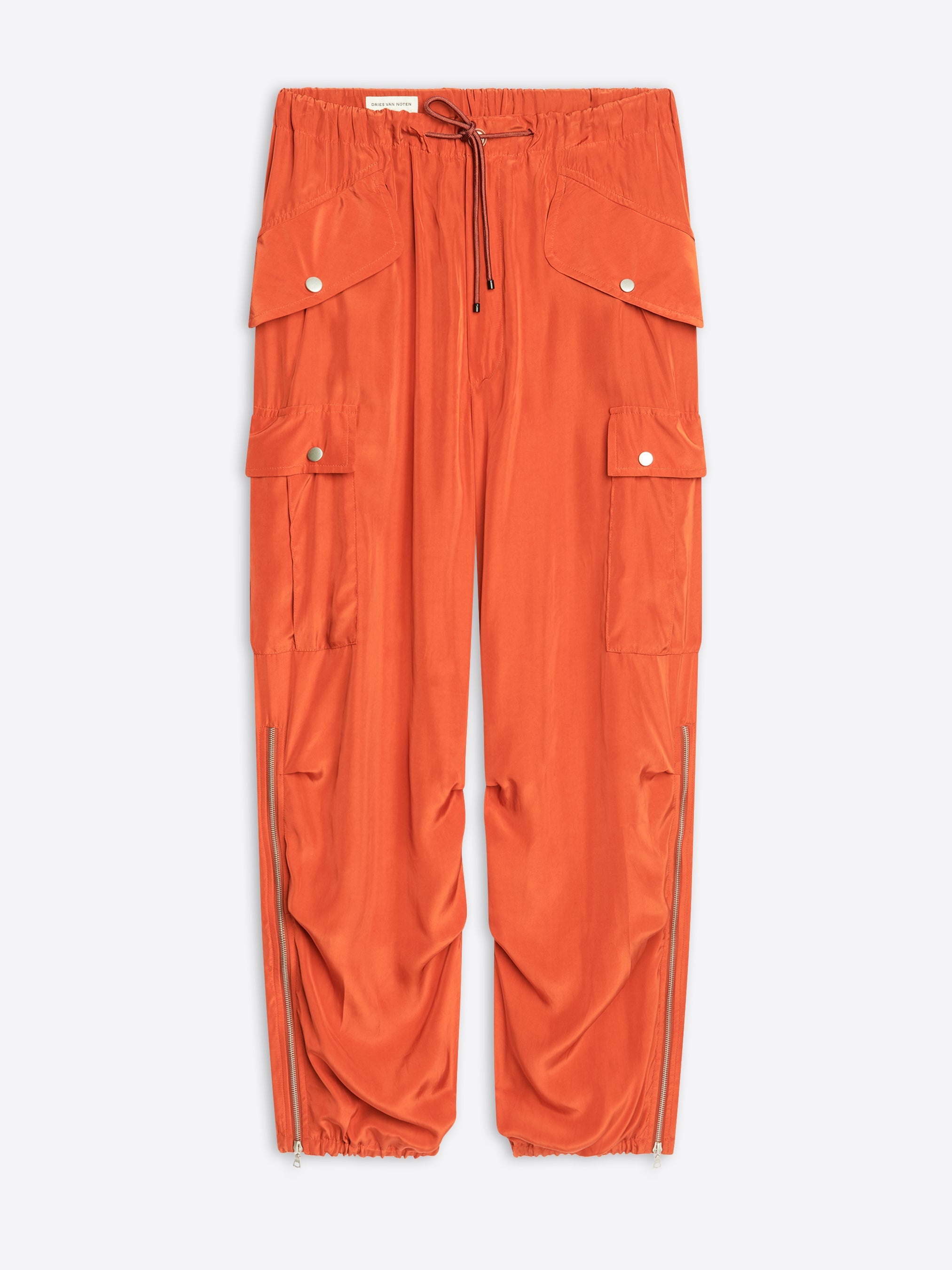 Loose fit cargo pants with side zips, in viscose. DETAILS - 100% Viscose. - Side zip details. - Loose fit. Mid rise. Straight leg. Side flap and cargo pockets and back welt pocket. Drawstring waistband. Elasticated ankles. Front button closure. - Ref: 241-020944-8374 SIZE AND FIT Model is 188 cm / 74 inches and wears size L.