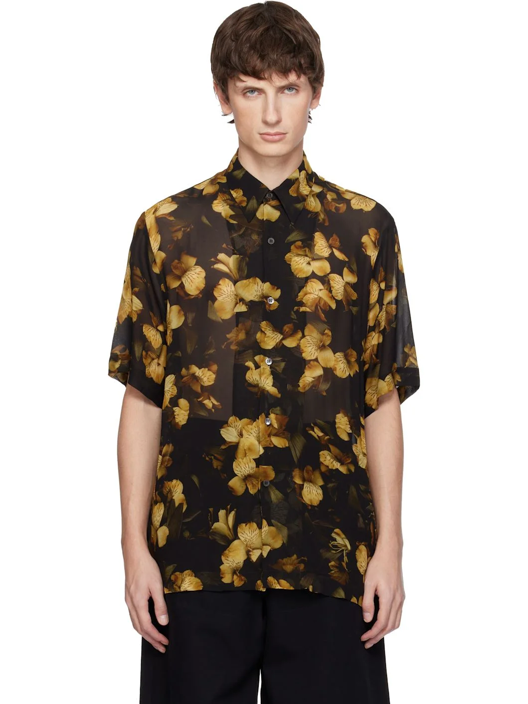 Semi-sheer viscose chiffon shirt. · Floral pattern printed throughout · Spread collar · Button closure Supplier color: Ocra 100% viscose. Made in Tunisia 252358M192071