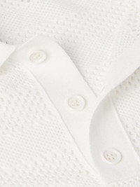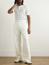 Dries Van Noten's polo shirt is from the SS25 collection, which plays with transparency. The stripes are created using alternating knitting stitches with smaller and wider pointelle patterns. Size & Fit - Fits true to size. Take your normal size - Designed for a slim fit - Lightweight, open knit - Model is shown wearing a M - Model measures: chest 38"/ 96cm, height 6'0"/ 183cm Details & Care - White pointelle-knit - Button fastenings - 70% viscose, 30% polyester - Machine wash